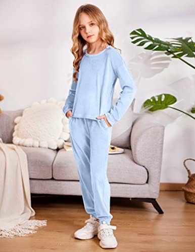 Arshiner Girls 2 Piece Outfits Kids Velour Sweatshirts & Sweatpants Casual Clothing Sets
