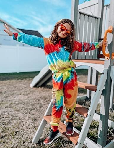 Arshiner Girl’s 2 Piece Tie-dye Pullover Hooded Sweatshirt Set Loungewear Sweatpants