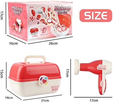 This makeup set for girls consists of 28 pcs accessories, including hair dryer, mirror,necklaces, etc.